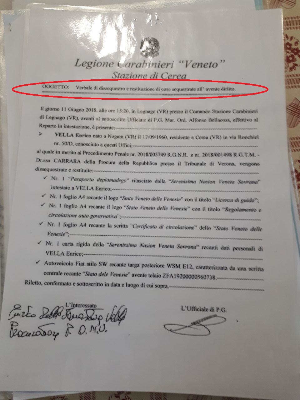Verbale di dissequestro di patente e un'altra auto dello stato veneto ... restituita all'AVENTE DIRITTO... se hai diritto puoi farlo. www.statovenetodelevenesie.org